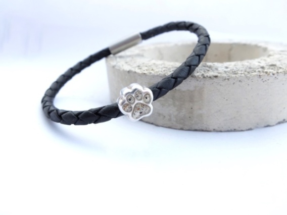 Bransoletka z koralikiem – łapka z pamiątką po pupilu (sierść lub prochy)